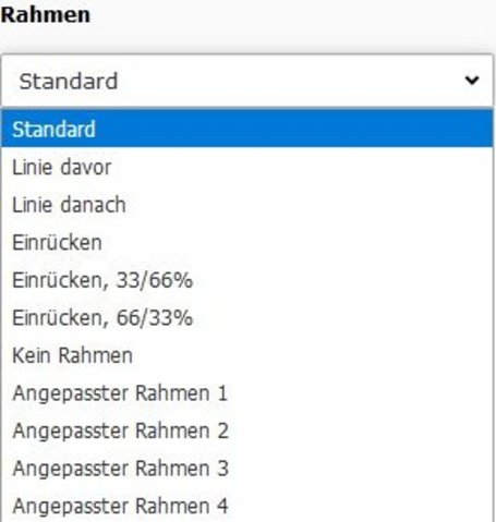 In der Registerkarte "Erscheinungsbild" können einem Inhaltselement verschiedene Rahmen zugewiesen werden.