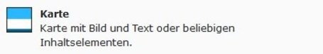 Das Bootstrap-Package stellt bereits ein Inhaltselement vom Typ Karten zur Verfügung, mit welchem vordefinierte Karten erstellt werden können. Das Strukturelement "Karte" ist in der Funktionsweise gleich, bietet jedoch die Möglichkeit, beliebige Inhaltselemente zu integrieren. So können bespielsweise Videos und Register eingebunden sowie ein Kopf- und/oder ein Fussbereich hinzugefügt werden.